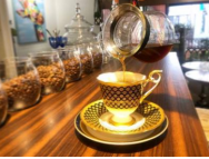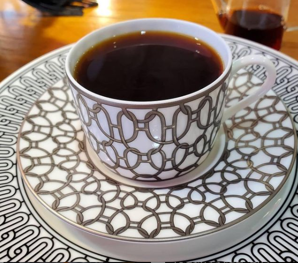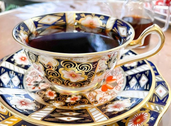 お客さんの要望に応じて、普段なかなかお目にかかれない高級なカップでコーヒーを提供している。英国のエリザベス女王も使っている「ロイヤルクラウンダービー」や、有名ブランド「エルメス」「ルイヴィトン」「セリーヌ」「アンティークカップ」など、1 脚 10 万円以上もする高級なカップで最上級のコーヒーを楽しむ特別な時間を過ごすことができる。
