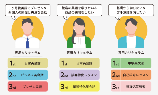 ■決まったコースはなく、「どうして英語を話せるようになりたいのか?」それぞれの目的から逆算した完全オーダーメイドのカリキュラムを提供