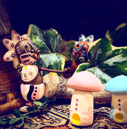 精霊とその仲間達の世界を絵や人形で表現する“精霊アーティスト”の顔も持つ。