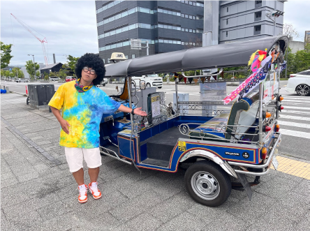 コロナ禍によりお店を休業せざる追えなくなった際に、⾟い状況だからこそ「愛する地元の皆さんを笑顔にしたい!」とトゥクトゥクを購⼊。これまで約50回に渡り観光案内やイベントでの乗⾞体験を通じて半⽥の魅⼒を伝えながら、多くの⼈たちを笑顔にしてきた。