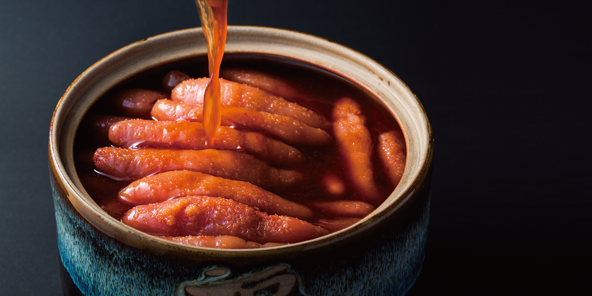 そこで研究を重ね、明太子の命と言われる調味料に、保存料、着色料、醤油、お酒、みりん、塩、水、漬ける壺まで拘った化学調味料を使わない明太子が完成しました。