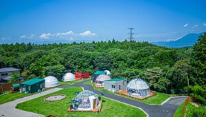 長野県塩尻市にあるグランピング施設「エンキャンプ」は、2,500 坪の広大な敷地にドーム型テント8棟を擁し、テント外には BBQ 設備も完備。快適なキャンプ体験ができる。