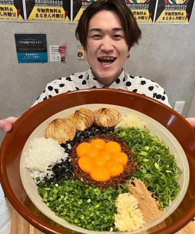 その美味しさから、大阪の有名まぜそば店からメニューのコラボを打診されるほど。大食いチャレンジメニューとして、超大盛りまぜそば(10 人前分・総重量 4.5kg)も提供。