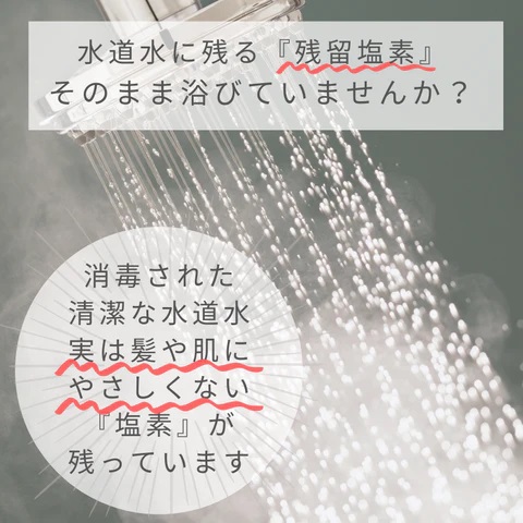 シャワーのお湯をそのまま浴びると、肌や髪が残留塩素を吸収し、肌荒れなどの原因になる…。