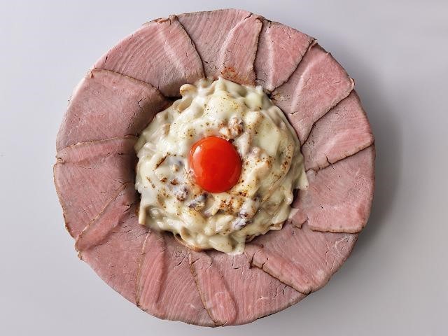 土日祝日に5食限定で提供しており、トッピングされたお肉とチーズがインパクト大!