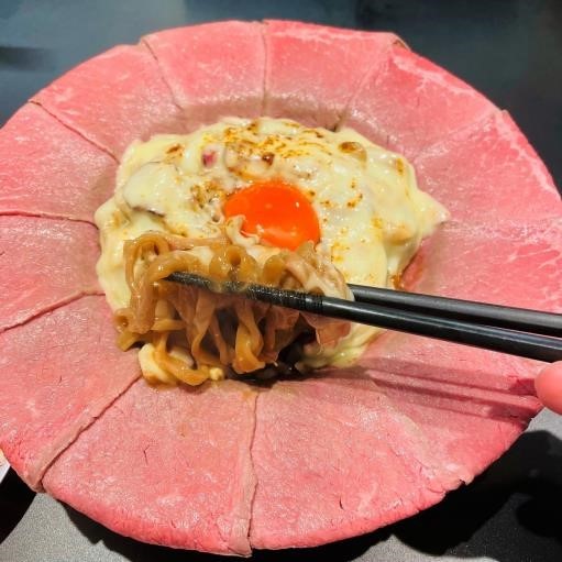 「肉チーズあの担担麺」(2,480 円)は、担担麺をアレンジした SNS 映え抜群のメニュー。