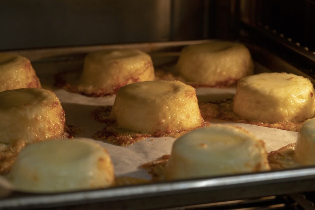 フランス産クリームチーズと生クリームなどを 練りこんだ白身魚のムースの中に、18 か月熟成したフランス産高級チーズを入れ、表面に厚切りモッツァレラチーズをトッピング。オーブントースターで焼くと、濃厚チーズがとろけ出す!映える進化系かまぼこ!*ブランド公式サイト:https://cercle-huit.jp/