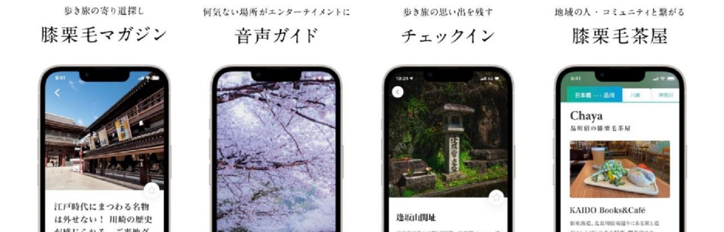 本サービスでは、「身近なまちの、何気ない道を、エンターテイメントに」をコンセプトに、固有の歴史や郷土文化などを紹介する「オリジナルマガジン」、歩きながら地域の物語を知ることができる GPS 連動型「音声ガイド」など、歩き旅を楽しんで頂けるコンテンツを提供しています。アプリ内で貯めた「文」は、オリジナルグッズやご当地ドリンク、スイーツなどと交換できます。