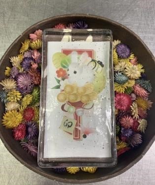 1月は“新春の京都”を表現!天使のエビのプレゼとサーモンの菜種焼で表現したのは、京都屈指のパワースポットの「平安神宮の大鳥居」。デザートは、抹茶白玉やホワイトチョコで作られた「伏見稲荷の千本鳥居」。