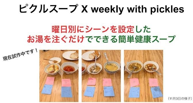 お湯を注ぐだけで OK の新商品「ピクルス―プ」を開発中