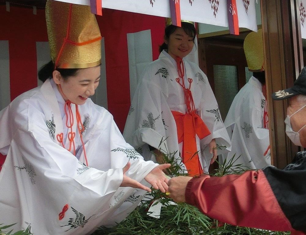 市外・府外の方々も参拝し、その数は 10 万人を超え、神社を代表する行事となっている。これまでも地域の方々が参加していたが、2024 年の「ねや川戎大祭」には 神社近くに位置する、障がい者就労支援施設「アンサンブル」の方々が奉仕する!「アンサンブル」の方々は「戎っさん」に欠かせない “福笹”に 千両箱や鯛など縁起物付けなど、祭りの準備に奉仕する。
