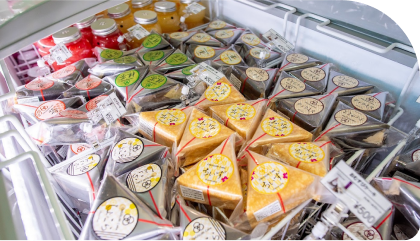 コロナ禍に全国のスイーツ店が冷凍でのお取り寄せ事業を始めたため、商品は全て冷凍で仕入れて販売している。したがって、冷凍なので保存期間が長く管理しやすいため、無人販売にも合う。