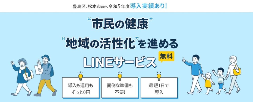 自治体向けに無償で提供しており、東京都豊島区や長野県松本市、茨城県かすみがうら市、千葉県白子町に採用実績がある。松本市では利用者が2000名を超えている。