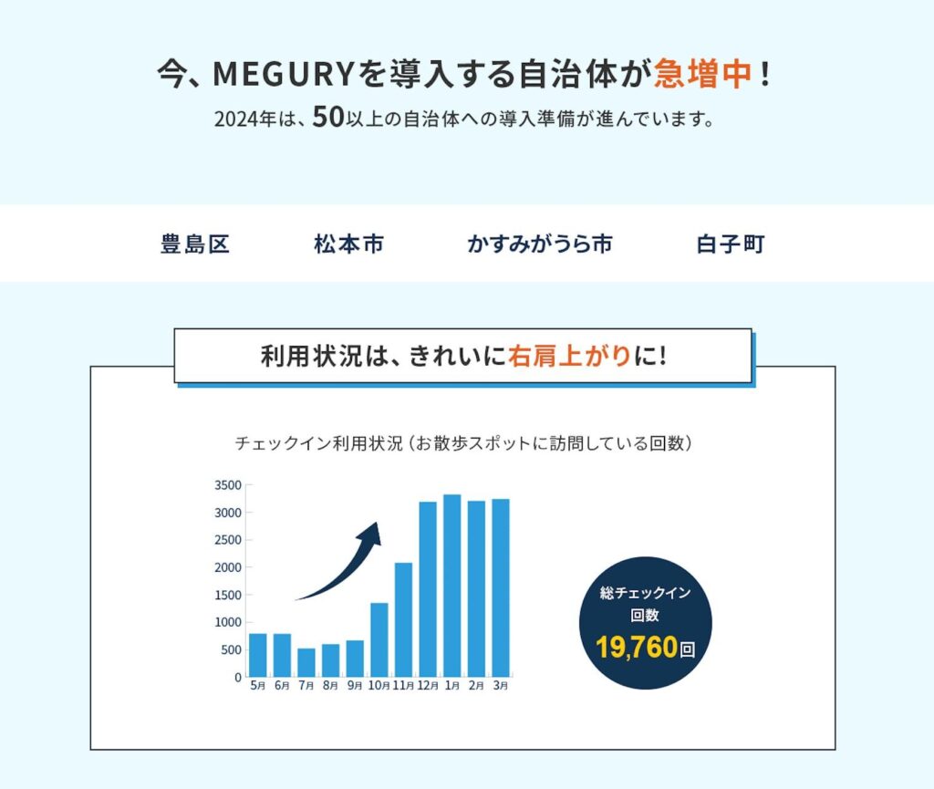 【ウォーキングをエンタメ化!チェックポイントを巡った分だけポイントが貯まる!】ゲームのように楽しく続けることで健康につながるサービス「MEGURY」