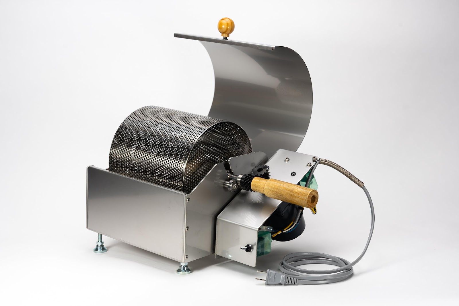 「1回に500gしか焼けない」「壊れやすくて修理やメンテナンスが大変」という悩みを解決するために、設計を一から行って、開発した焙煎機。価格は38万5,000円。
