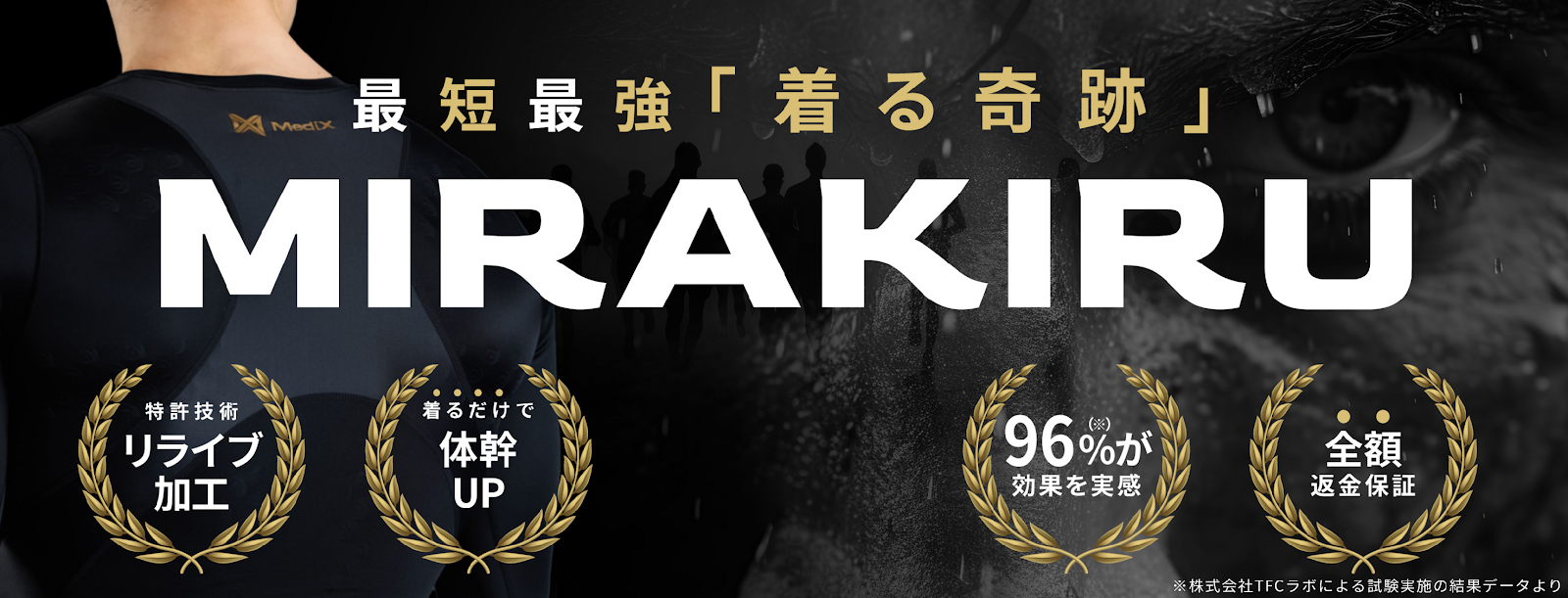 【“着て5分”で実感できる、身体能力を最大限に引き出すウェア】着るだけで身体能力の向上、姿勢矯正が期待できる「MIRAKIRU」