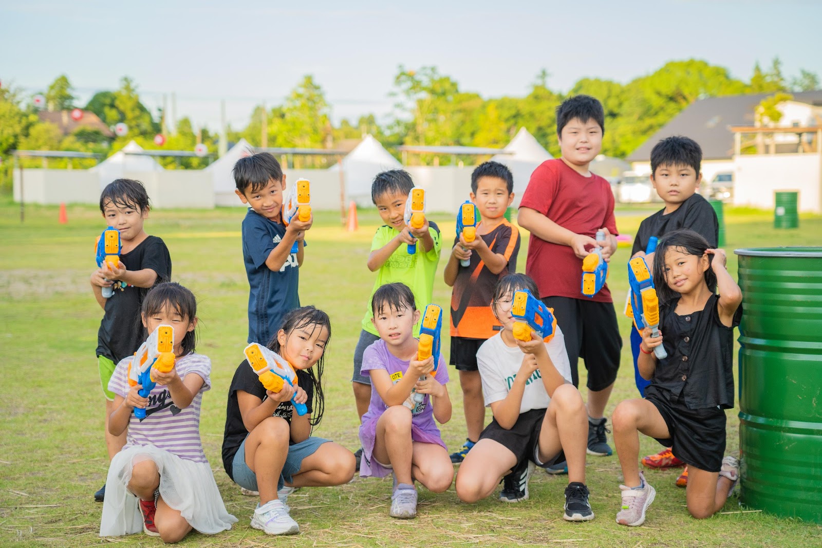「水鉄砲合戦」などのイベントでは、子どもたちが体を動かしながら外で思いっきり遊べる