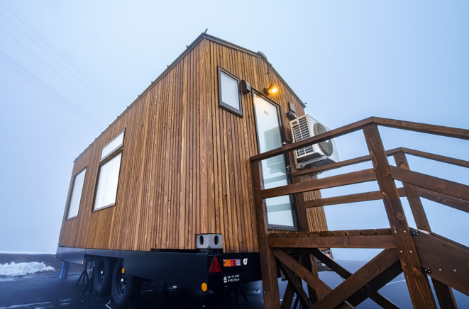 この、「サウナトレーラーハウス」とは、サウナ専用に設計されたトレーラーハウス。