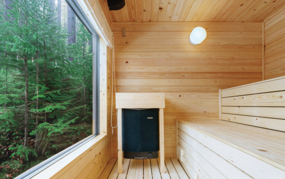 通常、トレーラーハウスは鉄で作られることが多いが、木材は熱伝導率が低いため、一度サウナ室を温めたら冷めにくい!香りが良いのも魅力!