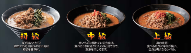 「初級」、「中級」、「上級」から「極限」まで辛味度は4段階!