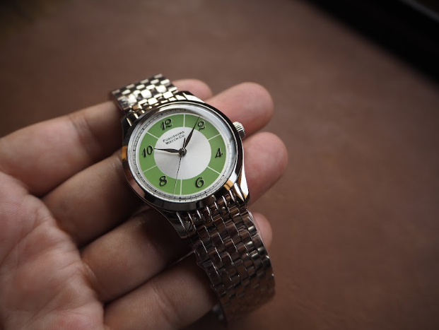 「Futaba」はクラシックなデザインを基調としながら、個性を引き立てるツートンカラーのダイヤルバリエーションが特徴。双葉町の独自の風景や文化を反映したカラー名も、このモデルに特別な意味を持たせている。