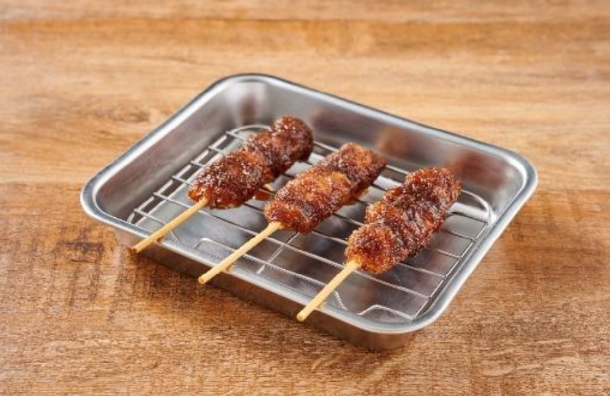 販売開始以降、SNS 上でも「本当に無限に食べられる!」「お酒のお供に最高!」と多くのお客様をやみつきにしている“無限串”。その味の特徴は、何といっても“無限串”のために開発された旨味たっぷりの特製ニンニク醤油タレです。