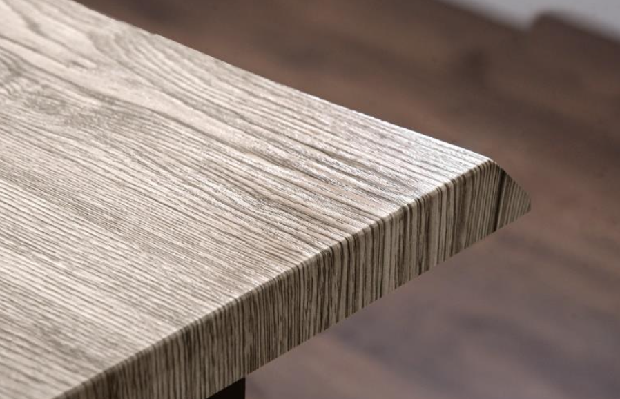 本製品は本物の一枚板かのようなリアルな質感を追求しました。天板側面には「なぐり加工」を施すことで曲線的なフォルムになっており、豊かな表情を感じることができます。