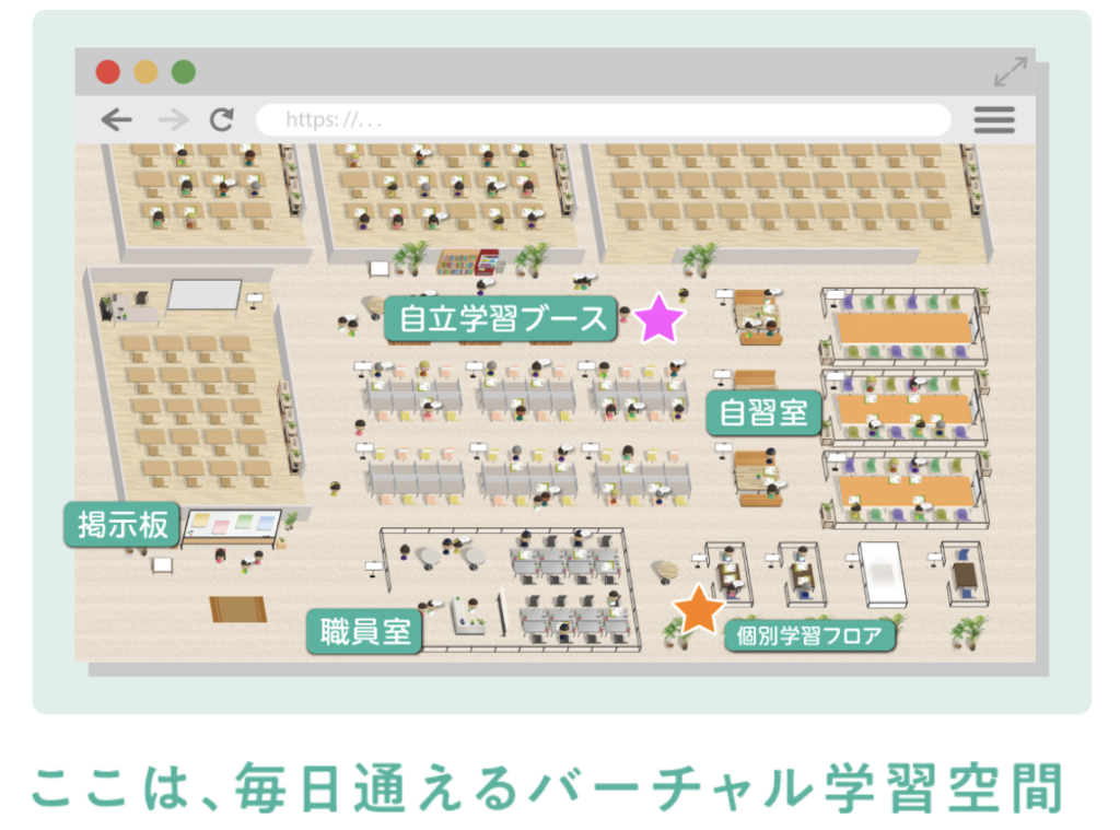 オンライン学習は孤独になりがち、というイメージを覆すのが「サインワンオンライン校」のバーチャル仮想空間。