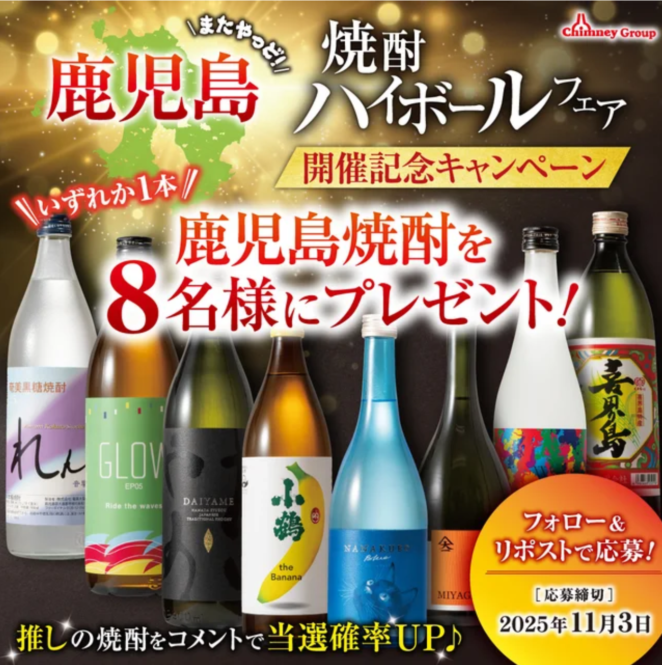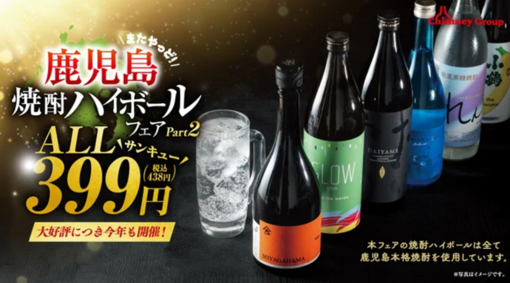 2025年9月4日(木)より、チムニーグループ376店舗で【鹿児島 焼酎ハイボールフェア】を開催。