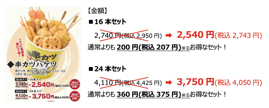 【「串カツバケツ」内容】