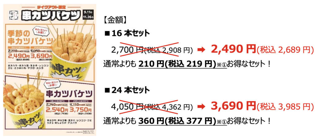 【「季節の串カツバケツ」(秋)内容】