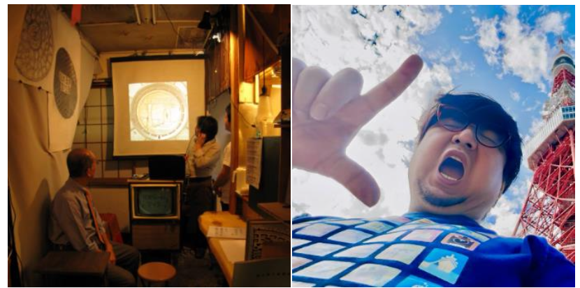 マンホールを観察・鑑賞し、その魅力と深遠に迫るイベント「マンホールナイト」の白浜さんと、ご当地キャラや名所のデザインマンホールをコレクションカードとして楽しむ「マンホールカード」の仕掛け人・山田秀人(山ぴぃ)さん。