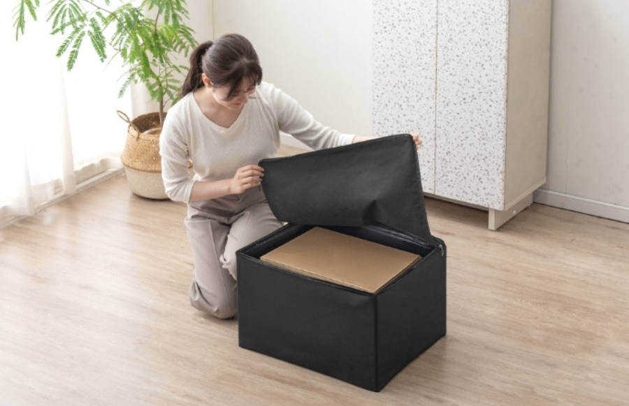 本製品は箱を広げて置くだけで設置できるため、到着したその日からすぐにご利用いただけます。さらに、使用しないときは折り畳んで玄関の隙間に立てかけておけるため、省スペースでの保管が可能です。