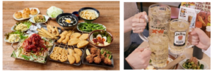 全コース、生ビールを含む 60 種類以上のドリンクが楽しめる飲み放題付きです。