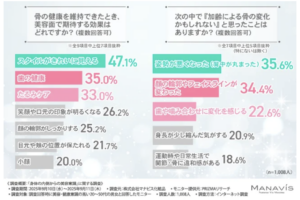 また、「姿勢の悪化」や「顔の輪郭の変化」など、加齢とともに骨の変化を実感している方も多いようです。