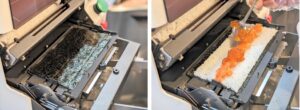 海苔のパリパリ食感を実現するため、素早く寿司を巻けるよう専用マシンを採用。