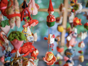 奈良県下の就労自立支援施設を中心に「流しびなやつるし雛」を作成していただいております。