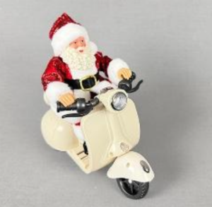 本当にウィリーしているかのような動きをする躍動感あふれるサンタクロース人形。陽気な音楽を流しながらサンタクロースが家の中を走る回ります。見てたのしい、飾って可愛いアイテム。サンタクロースのリアルな表情にも注目です。