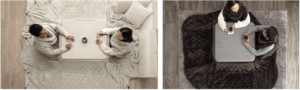 こたつに入る位置や姿勢に合わせて自由に変えられ、「壁側にもたれかかって使いたい」「斜めに座って広々使いたい」等お好みに合わせて付け替えられます。
