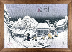 今回ジグソーパズルになったのは、葛飾北斎の「富嶽三十六景 東海道品川御殿山の不二」と歌川広重の「東海道五十三次之内 蒲原 夜之雪」をモチーフにしたドラえもん浮世絵2作品です。