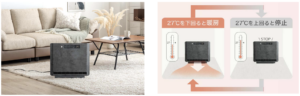 本製品は、人感センサーと室温センサーの2つを搭載しております。人感センサーは人の動きを感知し、自動で運転のON/OFFを切り替えることにより、消し忘れ防止になり、また効率的に暖まることが可能です。