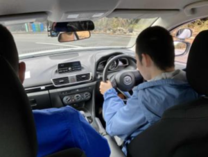 今回の自動車運転ツアーは、これまでの広くて平らな道を走る体験とは大きく違い、自動車学校の本格的なコースで行われました。道幅が狭く、路肩にデコボコがあり、対向車が来るような 1 車線の道を走るため、速度を一定に保ちながら細かいハンドル操作が必要でした。初級コースでも車庫入れを体験し、指導員と気持ちを合わせて運転する大切さを学びました。上級コースでは S 字カーブや坂道発進、マニュアル車の運転にも挑戦でき、夢が広がる内容でした。丁寧に教えてくれた教官やサポートしてくれた学生の皆さんに心から感謝しています。