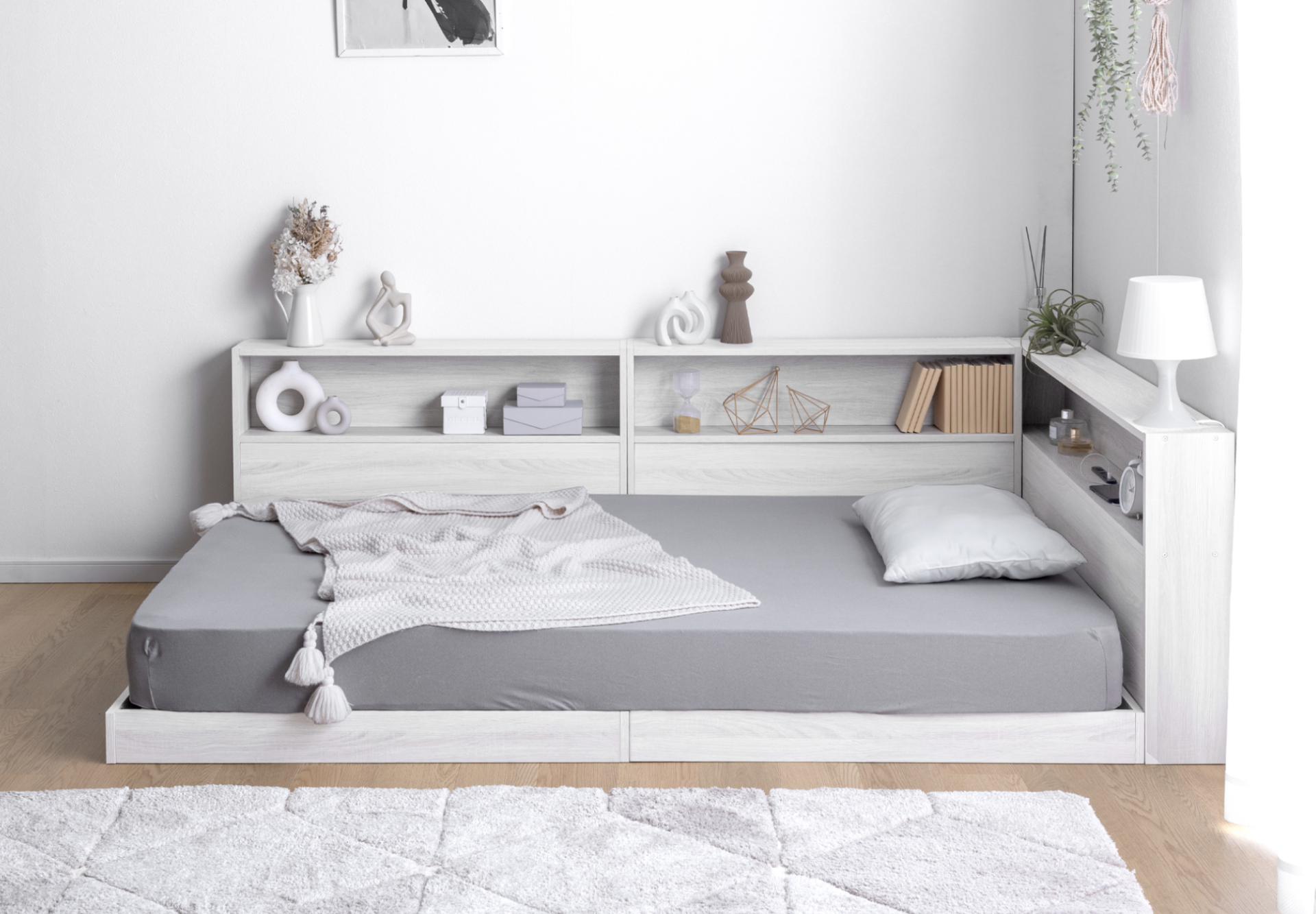 スマホや目覚まし、照明などベッド周りの小物類を置くスペースを確保し新生活を快適に!