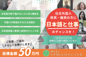 特定非営利活動法人 日本語とエクスチェンジの会(所在地:東京都、代表理事:槙野理美、以下 当会)は、命の危険や迫害から逃れてきた方、および経済的困窮状態にある在住外国人を対象とした日本語学習・就労支援プロジェクトを継続・拡大するため、目標金額50万円のクラウドファンディングを2026年1月22日(木)より開始いたしました。