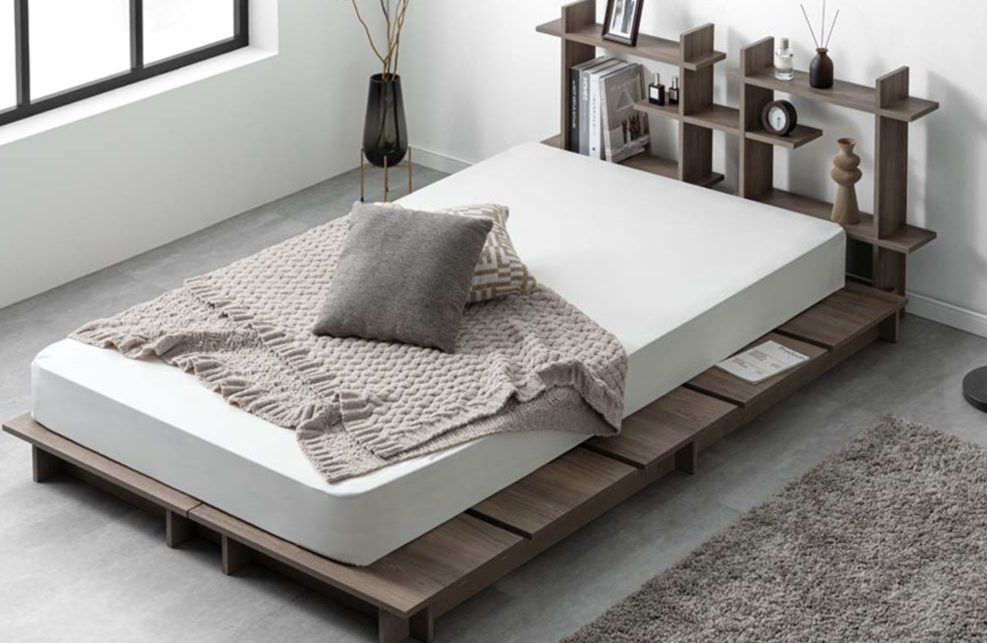 サイドにゆとりを生むステージベッドは、マットレスよりも一回り大きいことから空間におしゃれな印象を与えることができます。マットレスを設置する際には、中央もしくは端寄せと2パターンの使い方ができるので気分に合わせて変えることも可能です。また、高さを抑えたロースタイルにすることでお部屋をすっきりみせることが可能です。空間にゆとりが生まれ、開放感のある印象にすることができます。