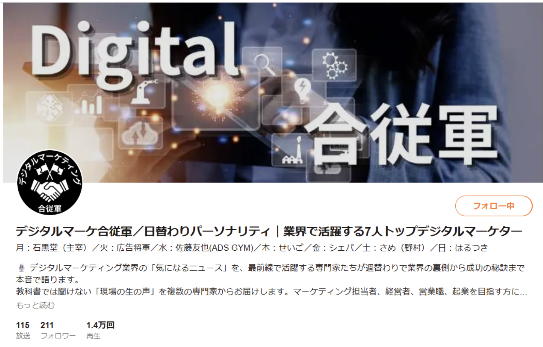 - 今後は、パーソナリティ同士のコラボ配信や、リスナー参加型の企画なども検討しており、デジタルマーケティング業界全体の成長に貢献してまいります。