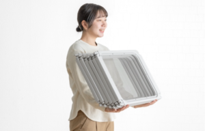 スチール製のようなガチャつき音が出にくいので、リビング等お部屋の中に設置するにもピッタリです。
